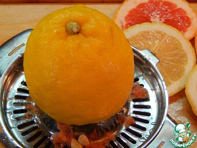 От лимона и грейпфрута отрезаем по 1 колечку.