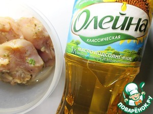 Куриное филе режем на небольшие кусочки, добавляем очищенный и тертый чеснок, паприку, черный перец и специи по вкусу, перемешиваем.