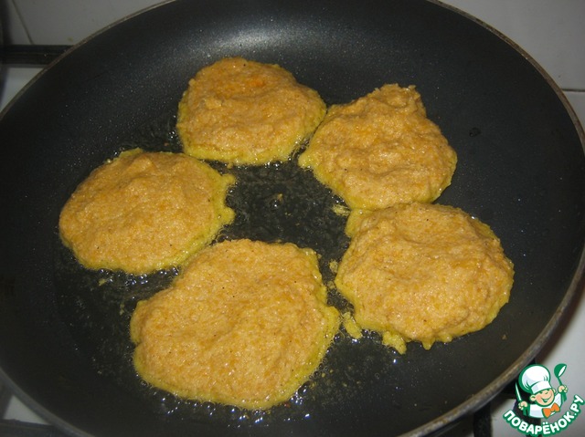 Формируем оладьи и жарим с двух сторон по несколько минут