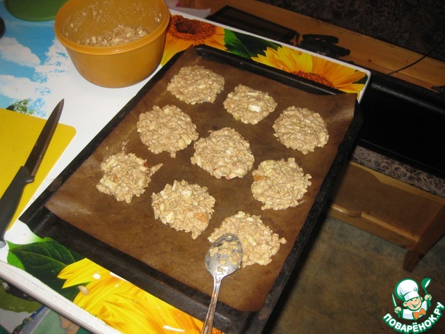 Для любителей злаковой выпечки, овсяного печенья в частности. Для меня это - дебют на Поваренке, так что не судите строго. Рецепт этого печенья буквально "родился" у меня после того, как меня посадили на диету педиатры по случаю высыпания аллергии у младшего сына, которого я кормлю пока исключительно грудным молоком. В тесте нет ни яиц, ни молока, ни сливочного масла (что пока мне запретили /сильно ограничили к применению). Зато в избытке полезного: овсяные хлопья, овсяная мука, яблоки. Также, плюсы этого печенья: вкусное, можно есть сколько хочешь. К тому же отличный вариант для весны, когда остается еще варенье с предыдущего сезона - я таким образом его "утилизовала". Ржаная мука дает печенью хрустящую корочку с ароматом свежевыпеченного хлеба, а благодаря свежим яблокам оно остается достаточно мягким, в местах дислокации кусочков - даже сочным.