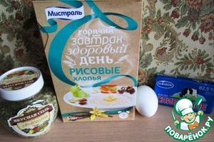 Наши составляющие для рисовых формочек. Очень удобная штука - эти рисовые хлопья "Мистраль", кашу рисовую варить надо минут 30, а то и больше, а тут пять минут и готово!