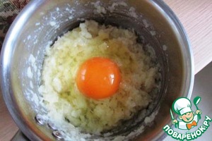 В немного остывшую кашу добавляем 1 яйцо. -