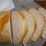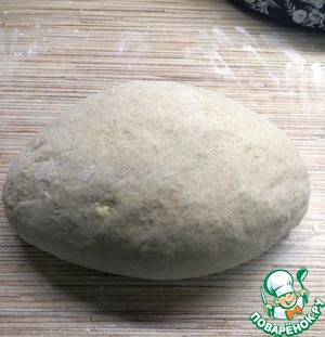На подпыленном мукой столе сформировать хлеб. Я выпекала в овальной форме, поэтому такой батончик