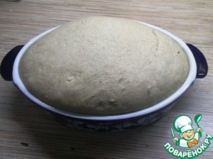Вот такой хлеб после подъема. После ставим его в холодную духовку и включаем печь на 180С.