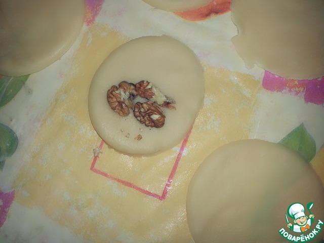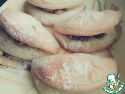 В середине ставим грецкий орех (рубленный)