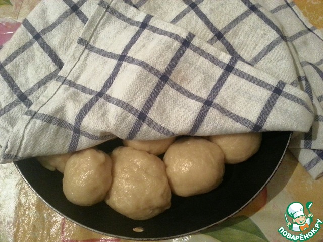 Из каждого кусочка формируем шарики, накрыть полотенцем и даём полежать на 1 час.