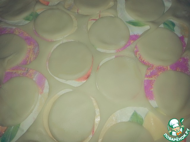 И вырезаем с помощью формочки (или стакана)на кружочки