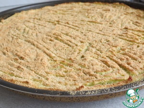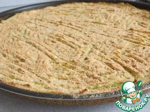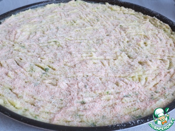 Форму для выпечки / 36 см /, смазать оставшимся маслом и обсыпать панировкой.