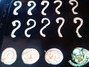 Теперь берем кондитерский мешок, складываем в него тесто и отсаживаем шеи и туловища наших будущих лебедей. Выпекаем при 200 градусах