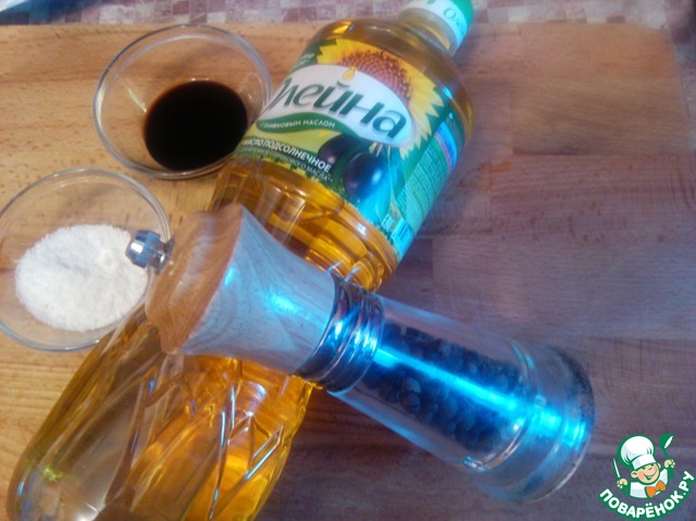 • Вот ингредиенты для заправки. Смешать их и вылить в соусник