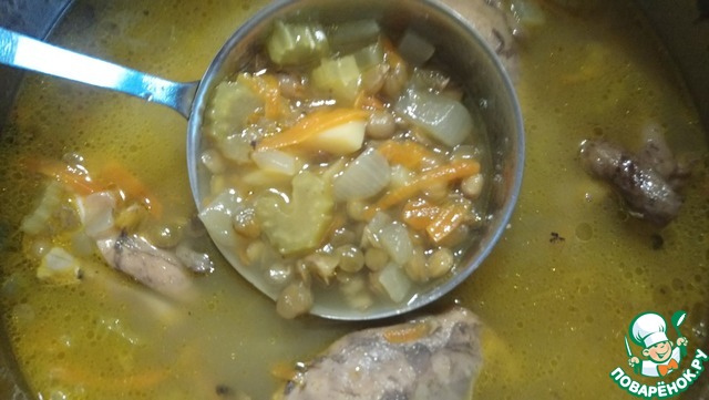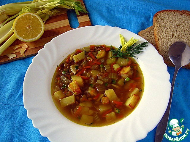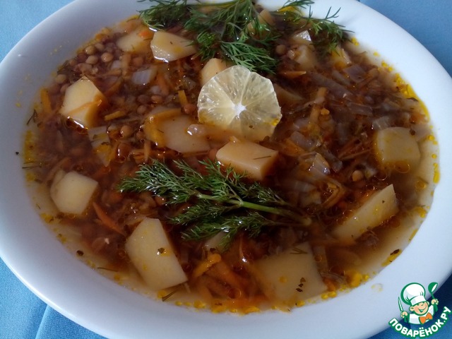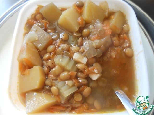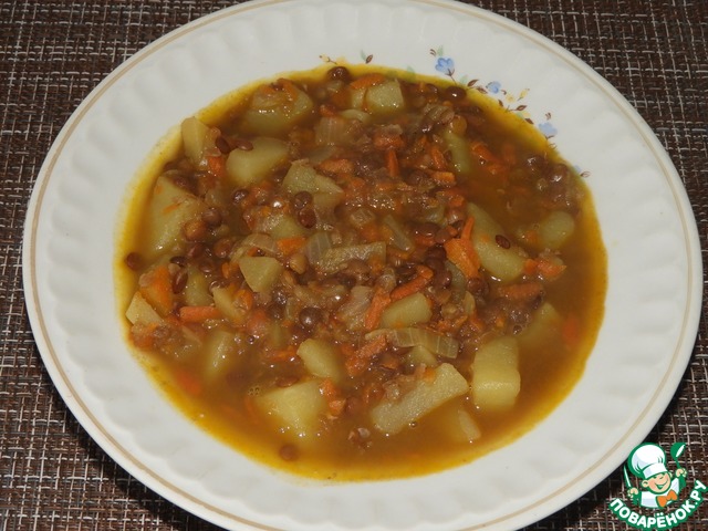 Варить 15-20 минут до готовности картофеля и чечевицы.