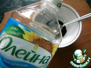 Приготовить заправку. Смешать мёд, тёмный бальзамический уксус, соевый соус и подсолнечное масло ТМ"Олейна" до однородности