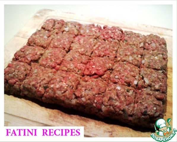 Выложив фарш на промазанную маслом рабочую поверхность, сформировать квадрат и разделить его на равные части и из них уже накрутить фрикадельки