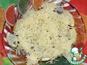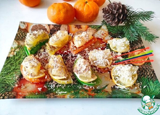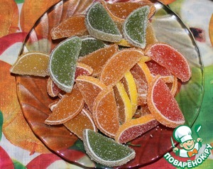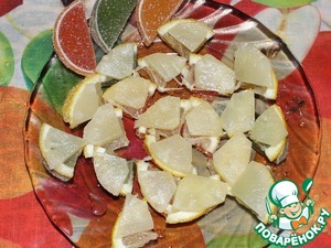 С мармеладом у меня любит муж, а мне больше нравится вариант менее сладкий. На дольку лимона (в сахаре)укладываем дольку ананаса.