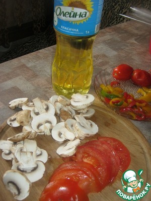 Нарезаем грибы и помидоры