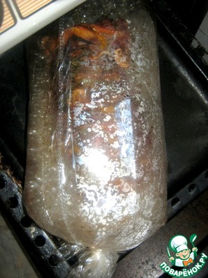 Аккуратно одеваем в рукав, и в нагретую до 180градусов духовку на полтора часа...