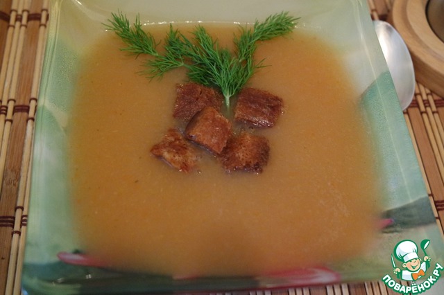 Суп-пюре довести до вкуса, выложить в тарелки, добавить сухари (с ними намного вкуснее), украсить зеленью.