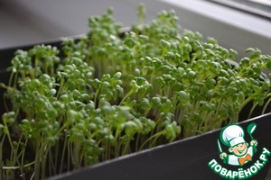 Кресс- салат срезают когда он достигнет высоты 5-7 см ( максимум 10см, потом он становиться не такой сочный и вкусный). Хорошо промыть от грунта и подсушить, затем нарезать (не мелко на 2-3 части).