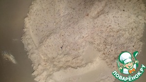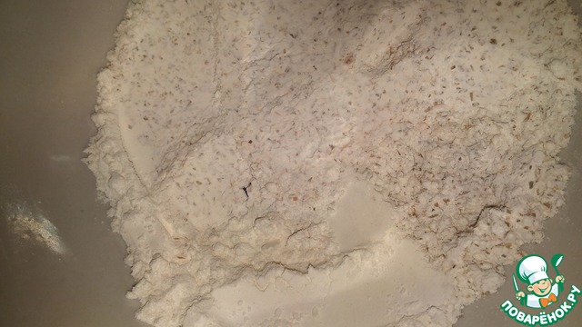 Смешать сухие ингридиенты (муку, отруби, разрыхлитель, соль, мускатный орех)