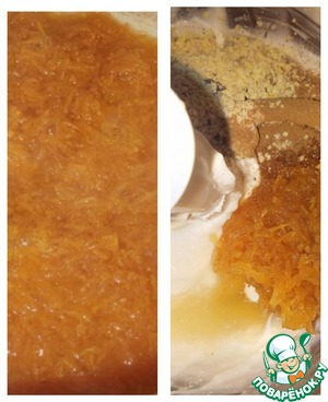 2. Для цитрусового слоя сварить морковное варенье из 1 протертой на мелкой терке моркови в 100мл. воды (варенье может быть и жидким в зависимости от количества сахара)
