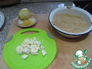 Печенье размолоть в крошку, охлажденное масло порубить, цедру лимона натереть на мелкой терке, стараясь не задеть белую часть.