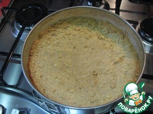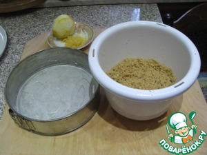 Смешать масло с крошкой печенья и растереть руками. Смазать разъемную форму (вместе с бортами до середины).