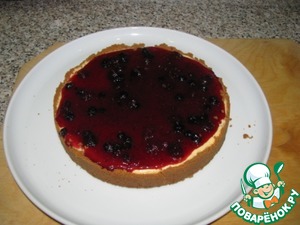 Покрываем верх конфитюром, джемом, вареньем, а можете и без этого как в оригинальном рецепте. У меня свежесваренный конфитюр из замороженной смородины.