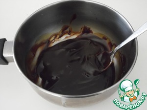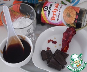 наливаем соус Териаки в ковшик, добавляем мёд, имбирь, и крахмал помешать и в это время, растопить шоколад в микро, добавить шоколад к соусу, размешать, и через мин убрать с огня.