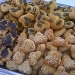 Тесто разрезаем на части, раскатываем толщиной в 0,5 см. Вырезаем формочками печенья. Раскладываем их на сухом противне, смазываем взбитым желтком, посыпаем кунжутом, смесью специй, паприкой или сахарной пудрой. Можно несколько видов сделать. -