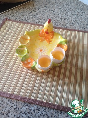 Ответственный момент. Белки отделяю от желтков. Аккуратно, чтобы не повредить желток. Оставляю в скорлупе, в подставочке для пасхальных яиц.