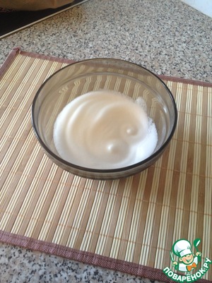 В белок добавляю щепотку соли, взбиваю миксером (можно венчиком) до устойчивых пиков.