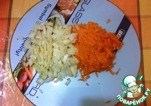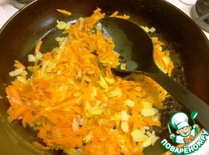 Тем временем спассеруем на растительном масле лук и морковь, можно добавить любимые специи. Я очень люблю хмели-сунели. Морковка поменяла цвет – отправляем ее в кастрюлю к полбе. -