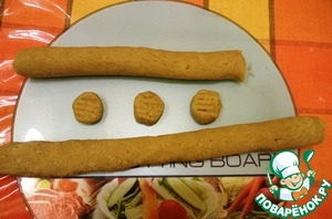 И, подсыпая по чуть-чуть муки (у меня ржаная, но это абсолютно не принципиально), замешиваем тесто. Важно не переборщить с мукой, а то клецки будут жестковаты, но и недоложить – тоже плохо: могут развалиться. Мне хватило двух столовых ложек. Формируем вот такие колбаски диаметром сантиметра два, нарезаем их на шайбочки, чуть приплюскиваем вилкой (для пущей красоты:)).