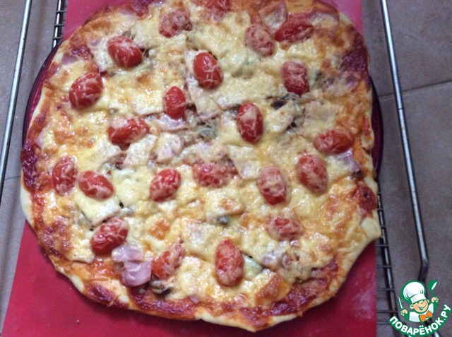 Рецепт «Пицца на тонком тесте с курицей и грибами»: