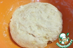 Подошедшее тесто делим на две неравные части. Большую часть - под основу, меньшую для верха. -