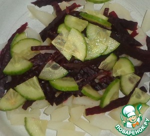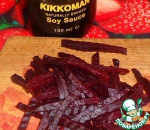 С помощью острого ножа нарезать свеклу длинной соломкой. Я использовала нож с узором для резки теста.