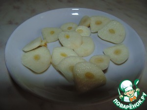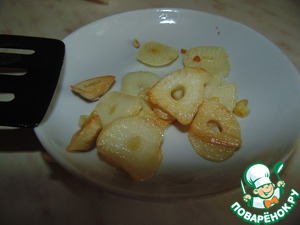 Два больших зубчика чеснока нарезать толстыми пластинками.