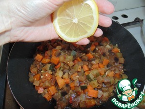 Когда овощи будут почти готовы, добавить лимонный сок. Потушить еще несколько минут.