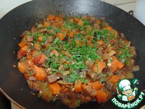 Выключить газ, добавить порезанную зелень, перемешать.