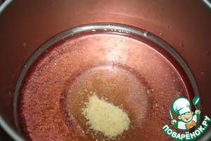 Желатин развести небольшим количеством сока, поставить на медленный огонь, довести до растворения желатина, постоянно помешивая. Не кипятить. Смешать желатиновую жидкость с остальным соком.