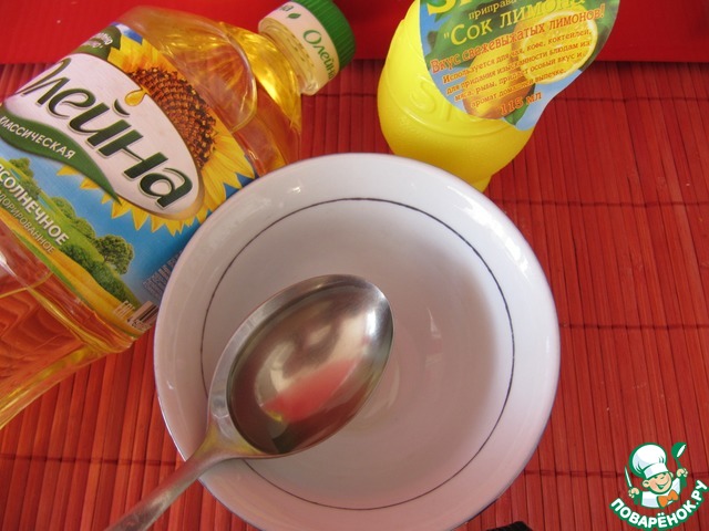 1. Смешать масло и сок лимона, посолить, добавить специй по вкусу.