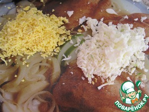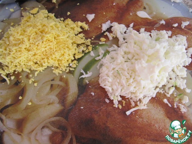 5. Отделить вареные желтки от белков и отдельно натереть на мелкой терке