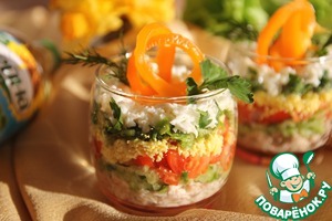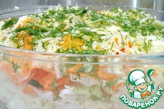 Очень вкусный, интересный салат и без особых хлопот, получается вкусно, и не прибавите при этом лишних килограммов. Отличный вариант - это рецепт диетического слоеного салата. Легко готовится, получается вкусно и не отражается на вашей талии, а только дарит вам удовольствие!!! 117 ккал на 100 г.