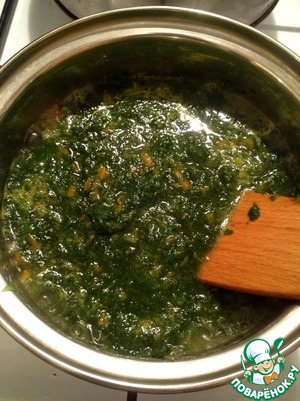 4. Добавить шпинат (у меня был замороженный и сразу размельченный) и петрушку.