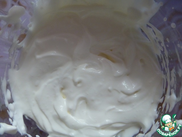 Отдельно взбить миксером белки с сахаром (до устойчивости).