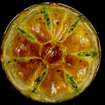 в центр пирога положить перевёрнутую чашку, слегка надавить сверху.