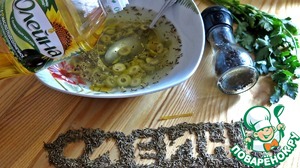 • Приготовим заправку, в которой будет тушиться картофель. Смешиваем вместе оливки, цедру лимона, кумин, воду, соль, перец и масло. Т. к. оливковое масло, продукт довольно дорогой, я использую подсолнечное с добавлением оливкового от ТМ "Олейна".