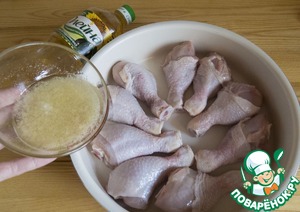 Всё хорошенько перемешиваем и маринуем мытые ножки в течение получаса.