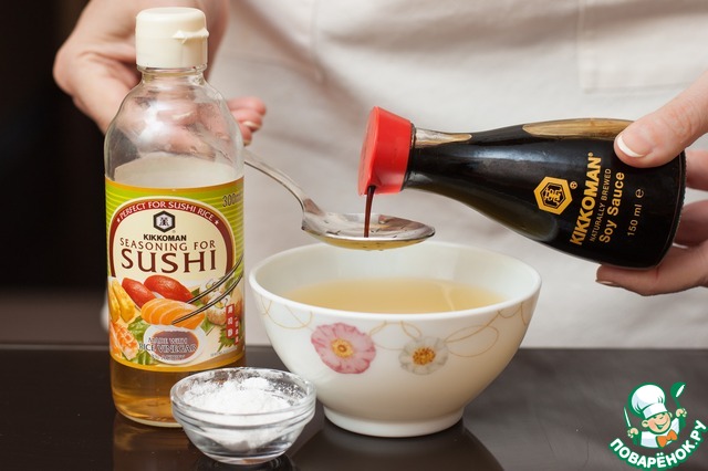 - Уксус (рисовый, для суши или яблочный) — 0,5 ст. л.