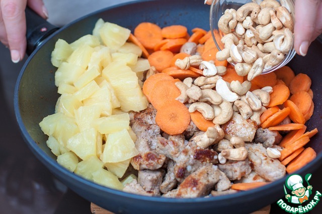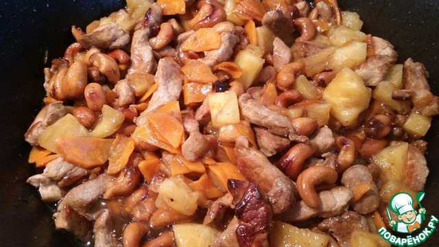 Рецепт «Свинина с кешью, ананасами и соевым соусом»: